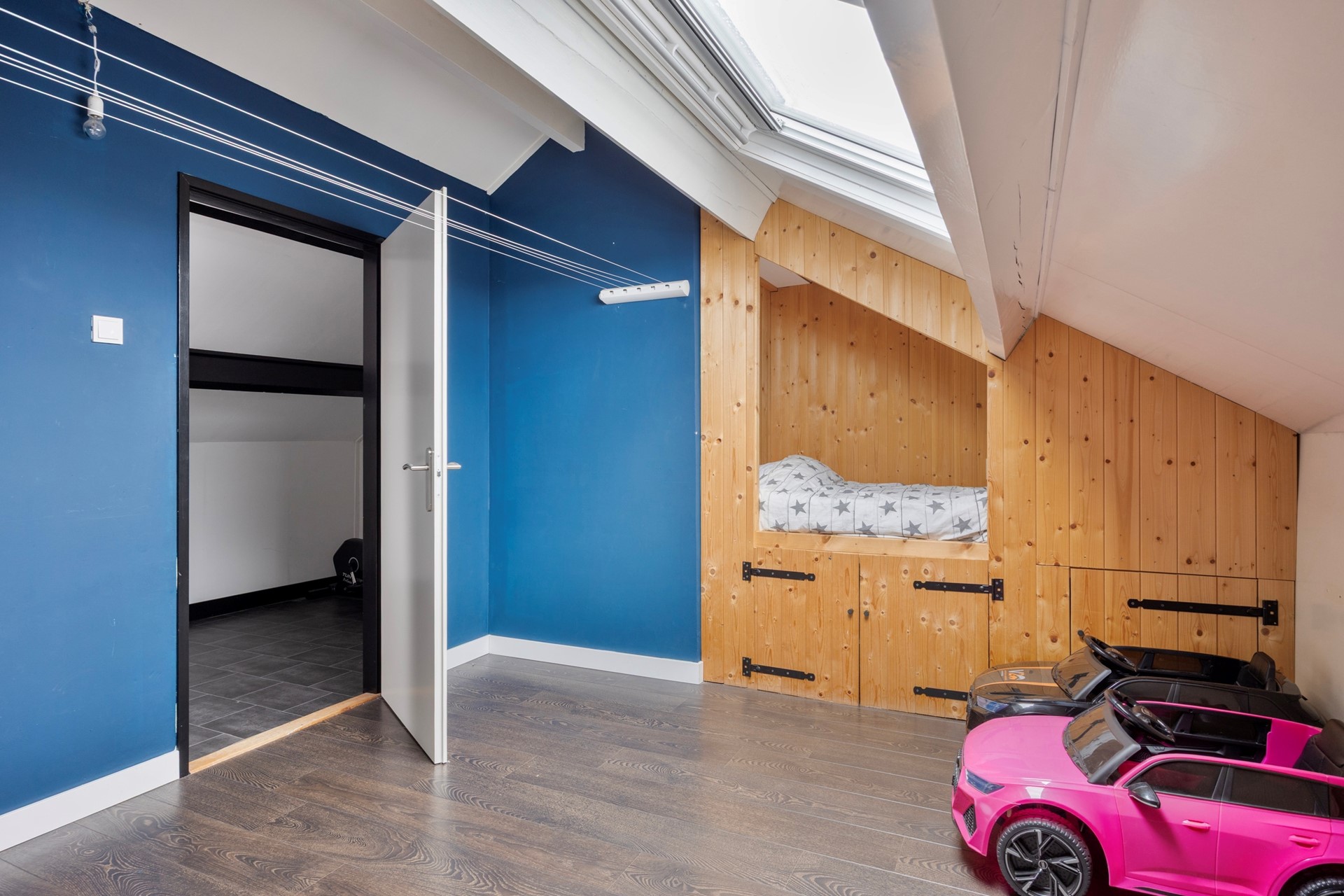 Voorzolder met CV ketel en witgoedaansluitingen en toegang tot de 4e slaapkamer.