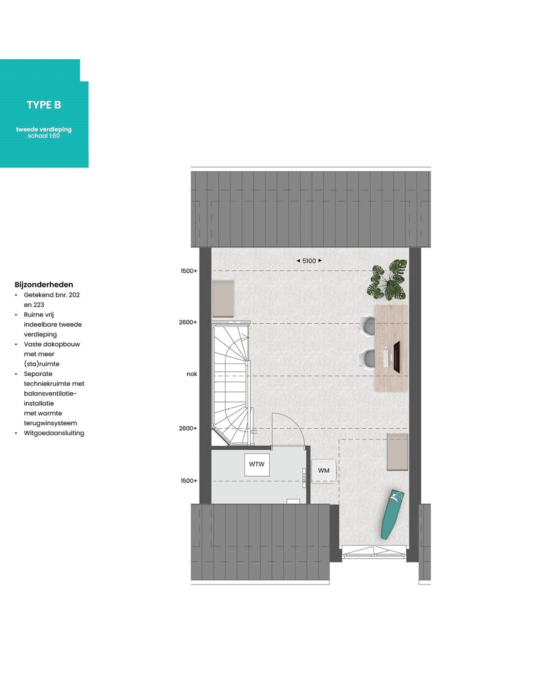 Ook op de tweede verdieping zijn er volop mogelijkheden. Met een dakkapel creëer je een lichte, ruime (slaap)kamer of een fijne speelruimte. Liever een praktische indeling? Richt een aparte wasruimte in door een scheidingswand te plaatsen.