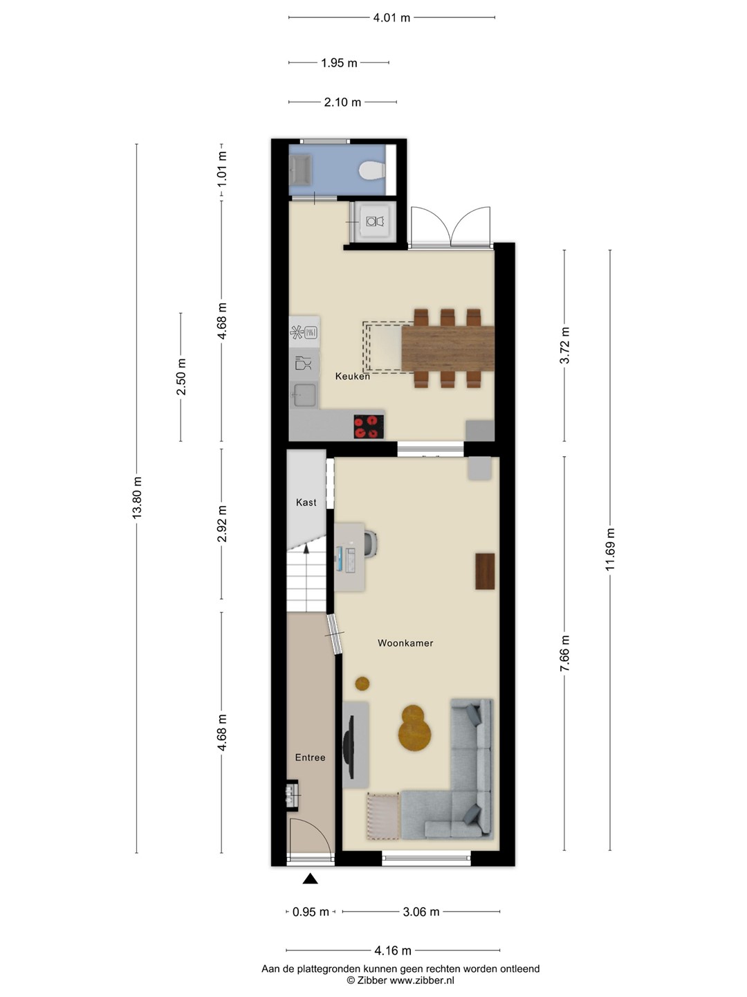 Via de entree kom je in de hal met meterkast en toegang tot de woonkamer. De woonkamer ligt aan de straatzijde en biedt een fijne leefruimte. Doordat de eethoek zich in de woonkeuken bevindt, kun je de woonkamer gezellig en praktisch indelen.