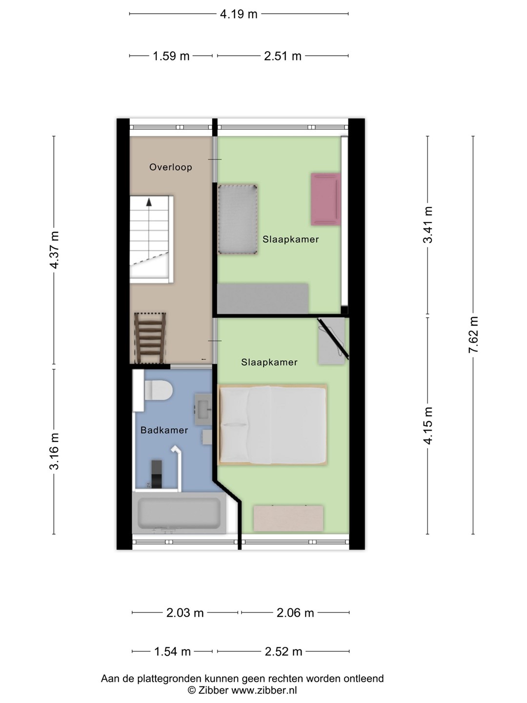 Op de eerste verdieping zijn twee goede slaapkamers en een ruime badkamer aanwezig. De badkamer is compleet uitgevoerd met een ligbad, inloopdouche, toilet en wastafel. Via een rechte trap bereik je de tweede verdieping. Vanwege de beperkte hoogte is dit een bergzolder, maar wel een nette en bruikbare extra ruimte.