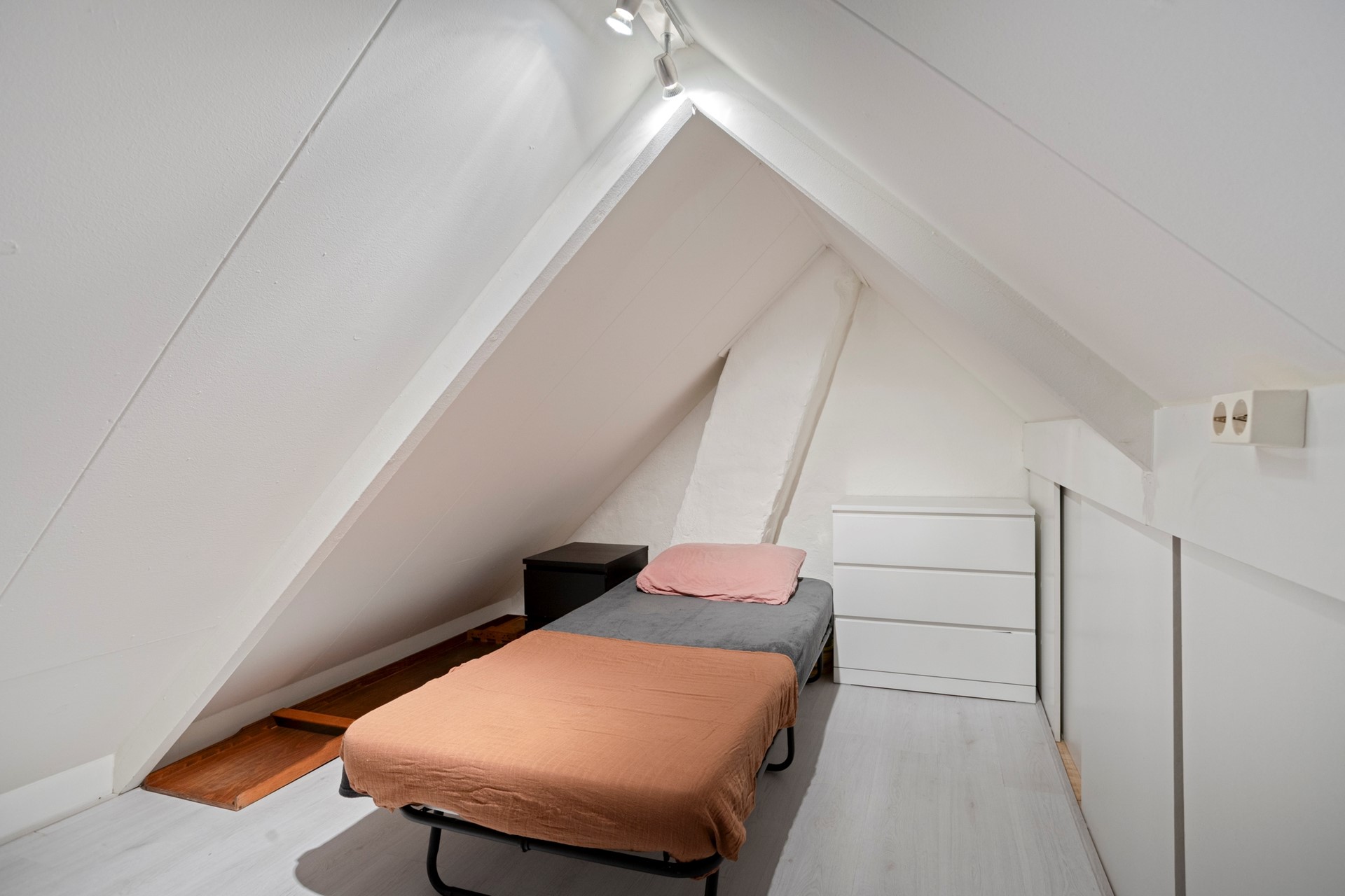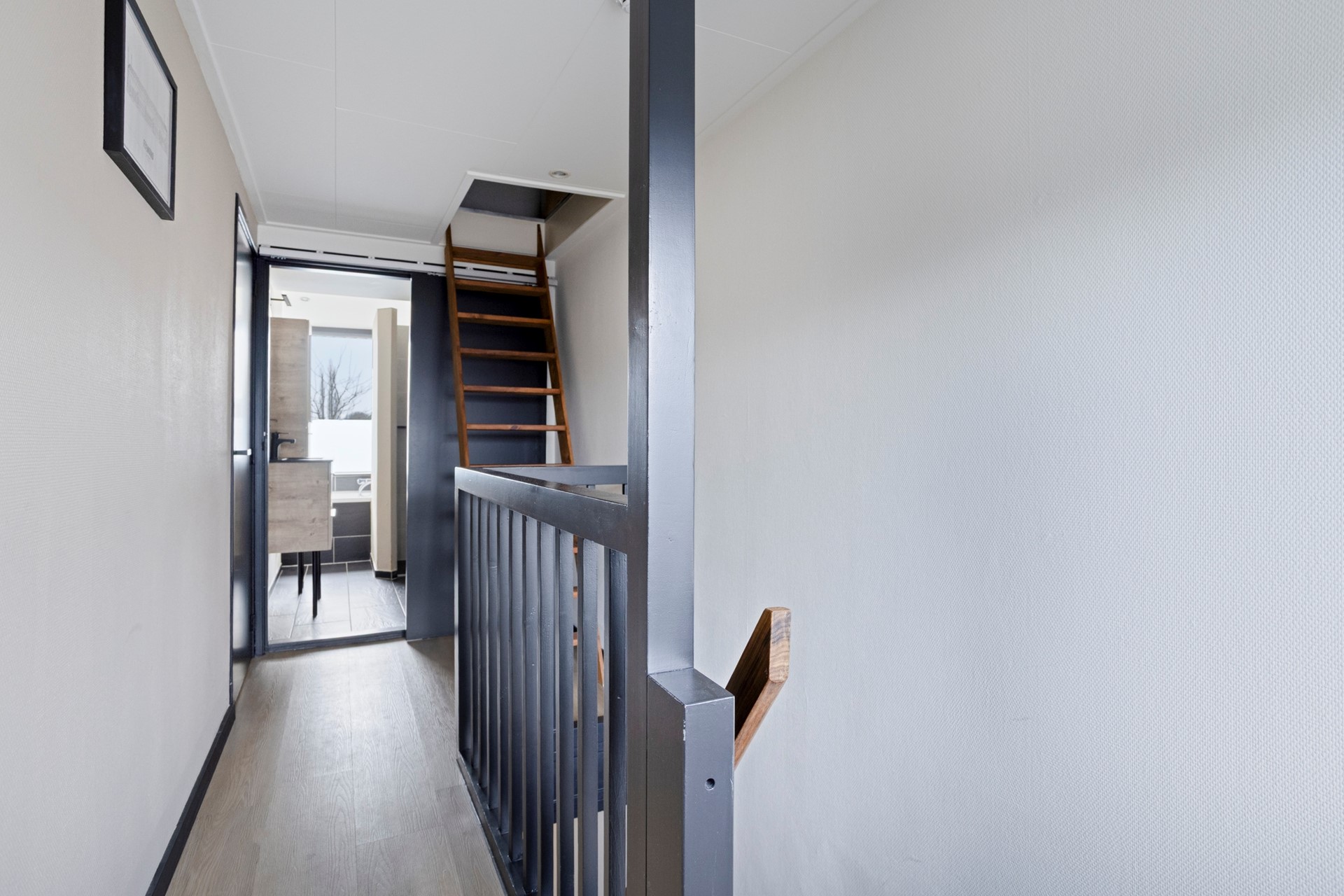 Via een rechte trap bereik je de bergzolder.