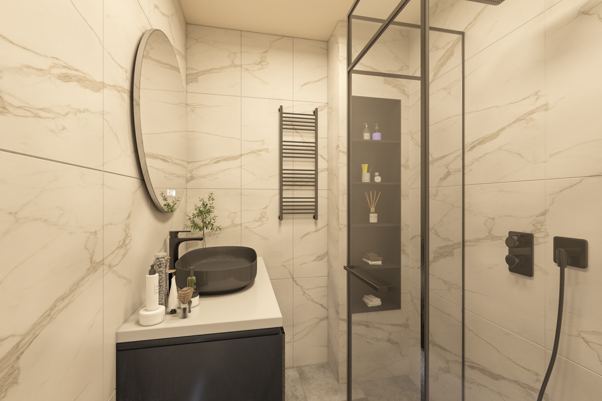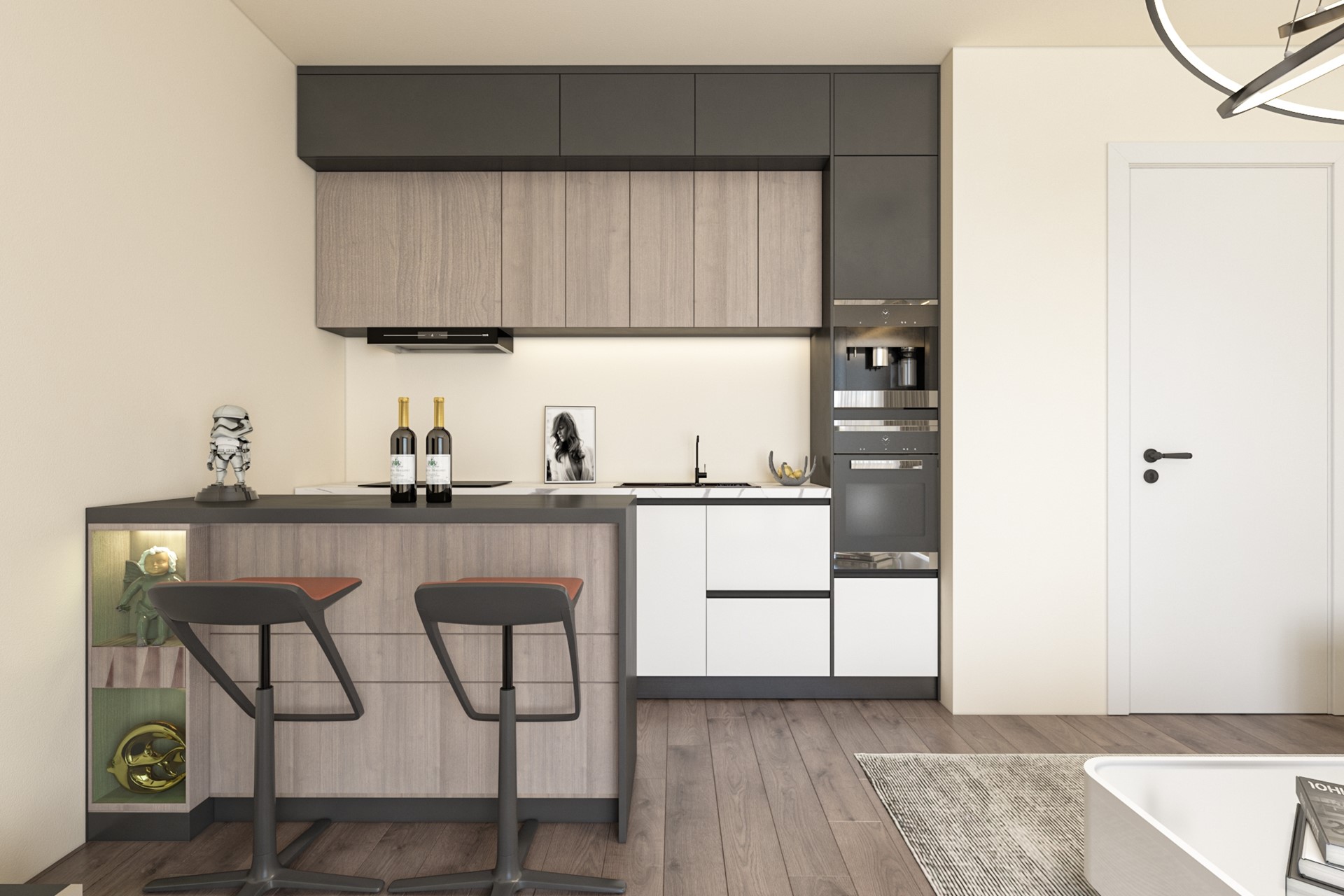 Entree, gang met meterkast en techniek ruimte, toegang tot twee slaapkamers, badkamer, separaat toilet en toegang tot de woonkamer / keuken, balkon.