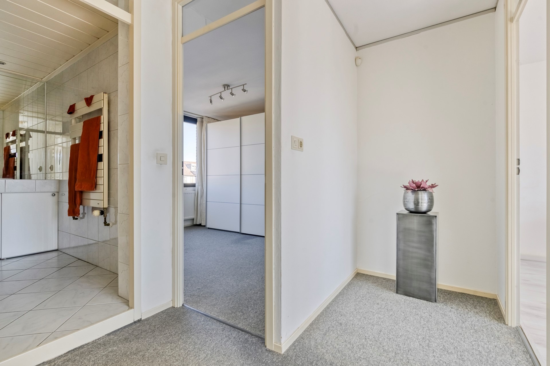 Op de eerste verdieping is er een overloop met toegang naar twee grote slaapkamers. Voorheen drie kamers. De badkamer is voorzien van een wastafel meubel, douche en toilet. De badkamer is wel wat ouder, maar wel erg goed onderhouden. Via een vaste trap kom je op de tweede verdieping met een grote open zolder met cv-opstelling en wasmachine aansluiting. Je kunt hier op eenvoudige wijze een extra slaapkamer of zelfs wel twee slaapkamers realiseren.